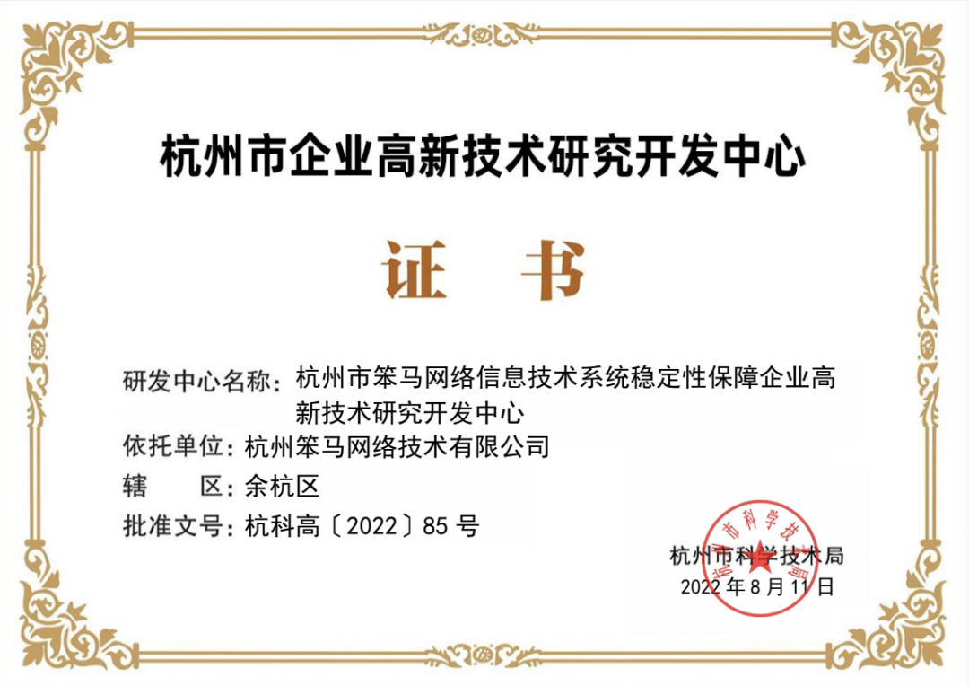 根据《杭州市企业高新技术研究开发中心管理办法》的有关规定,经严格申报、专家评审、现场考察和推荐公示,杭州笨马网络顺利通过认定,被评定为“2022年杭州市企业高新技术研究开发中心”。